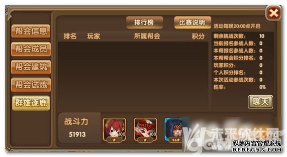 2.活动期间您有十次报名参战机会,单场战斗无论胜负均可获得积分、帮贡、金币