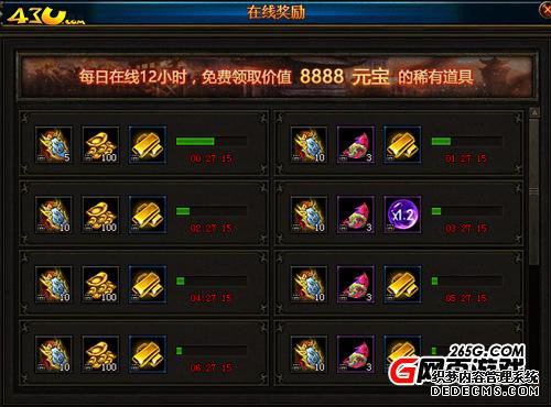 在43u《勇闯乱世》中,野外挂机是比较轻松获得元宝的途径。每天在线时间越长可以领取的奖励越多,完成对应成就还可提升在线等级哦!元宝也会在这里产出。七日登陆也是玩家每天必光顾的,累计七天,天天登陆,天天豪礼!