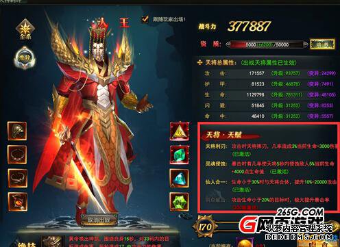 此外天将还可以通过天将岛的试炼进行进化,进化之后天将名字会有变化,属性加成超多,是提升的不二之选,每天都可以进天将岛刷一次材料,地脉灵石。最后也别错过了天将的装备,可在天空之城刷怪掉落获得,或者也可以通过充值获得。高级的装备可以通过低级装备合成获得,天将的专属宝石是通过充值获得的,其他宝石则可以通过宝石抽奖获得。