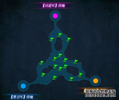 副本内共有15个据点,每个阵营个有3个阵营据点,此外,还有6个中立小据点供玩家占领,玩家在副本内击杀据点守卫怪就可以占领据点,已经占领的据点可为己方阵营累计物资